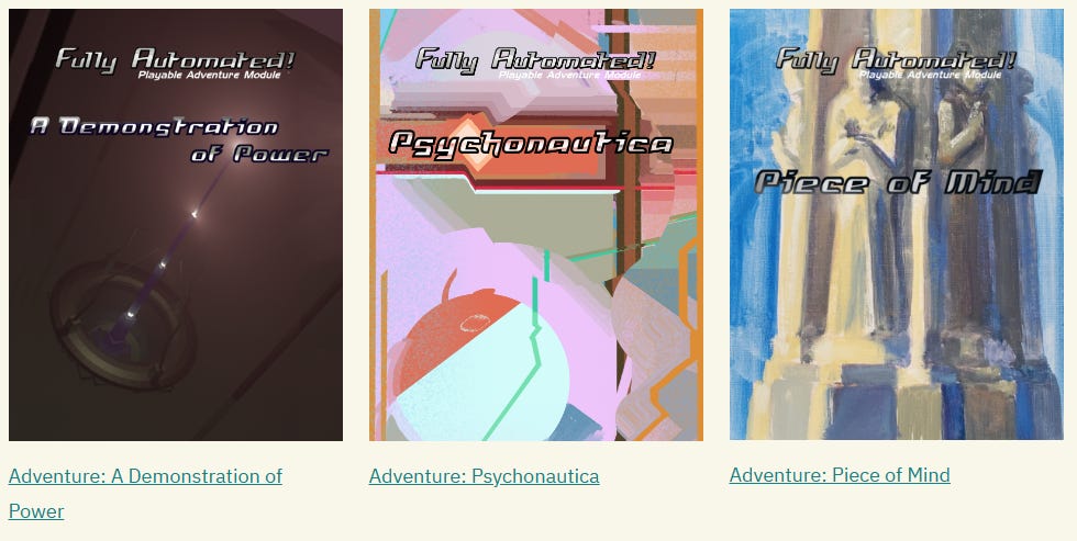 You can read more at https://fullyautomatedrpg.com/ and support them in DTRPG at https://www.drivethrurpg.com/en/publisher/27760/fully-automated-og-dev-group